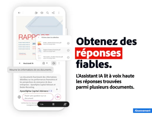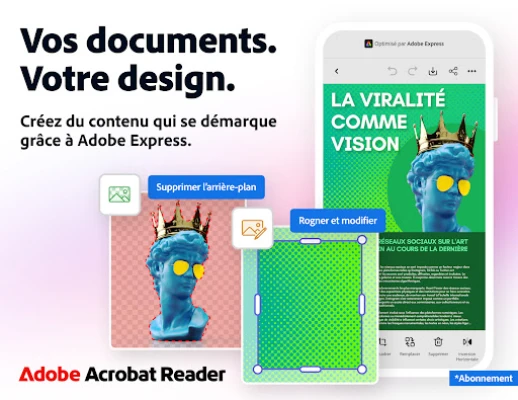 Transformez radicalement la gestion de vos documents avec Acrobat Reader, la solution complète qui redéfinit l'interaction avec le format PDF. Reconnu mondialement comme la plateforme de prédilection pour des millions d'utilisateurs, Acrobat Reader transcende la simple lecture : il est votre espace privilégié pour consulter, partager, annoter et signer vos documents en toute fluidité. Optimisez votre collaboration grâce aux espaces partagés et donnez vie à vos idées avec des outils de conception dynamiques, propulsés par l'innovation d'Adobe Express. Accédez à vos fichiers où que vous soyez, grâce à un stockage en ligne sécurisé, pour une productivité sans limites.