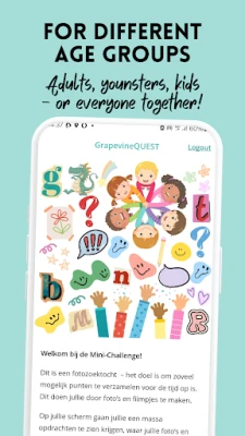 Découvrez grapevineQUEST, la plateforme révolutionnaire conçue pour dynamiser l'engagement communautaire et renforcer les liens au sein de groupes de toutes tailles. Inspiré par l'excitation des chasses au trésor, grapevineQUEST transforme chaque rassemblement, qu'il s'agisse d'un événement scolaire, d'une activité d'entreprise ou d'une réunion associative, en une aventure interactive mémorable. Libérez le potentiel de la collaboration et de la découverte pour les jeunes comme pour les adultes, grâce à des expériences de quêtes photo uniques qui stimulent la créativité et le travail d'équipe.