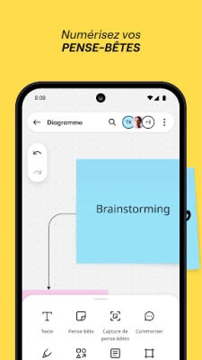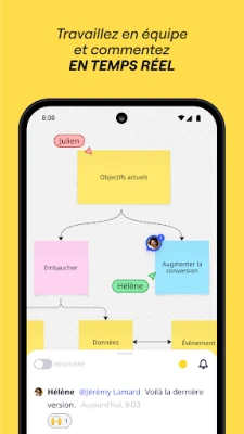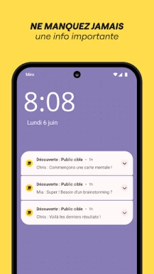 Avec son application mobile dédiée, Miro rend la créativité et la collaboration accessibles instantanément. Capturez l'inspiration à l'instant T en numérisant vos notes manuscrites et en les convertissant en éléments éditables. Créez, consultez et modifiez l'ensemble de vos tableaux depuis votre appareil, en gardant vos idées organisées où que vous soyez. Partagez aisément vos avancées avec votre équipe ou le public, téléchargez des images, des photos et des documents variés, et gérez les commentaires pour maintenir une dynamique d'équipe fluide et réactive.