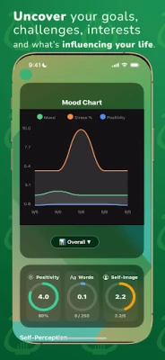 Plongez au cœur de votre propre histoire grâce aux fonctionnalités intuitives d'Olympus AI. Visualisez votre paysage émotionnel à travers des graphiques d'humeur détaillés, évaluez votre stress et identifiez vos centres d'intérêt et objectifs. Chaque interaction alimente des invites intelligentes, conçues sur mesure pour vous encourager à une introspection plus profonde, s'appuyant sur vos réflexions antérieures. Le tableau de bord dynamique d'Olympus AI vous offre une perspective claire et organisée de vos émotions, de l'évolution de vos habitudes et de l'alignement de vos valeurs au fil du temps.