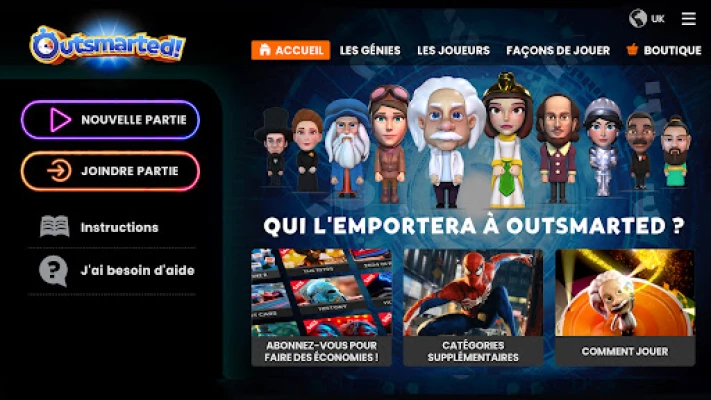 L'aventure Outsmarted ne connaît pas de limites géographiques. Invitez vos amis et votre famille à vous rejoindre dans une partie à distance, où chacun utilise son propre appareil comme contrôleur, créant ainsi une atmosphère conviviale et connectée, peu importe la distance. La prise en main est instantanée : quelques minutes suffisent pour maîtriser les règles et lancer votre première partie. Lancez le dé virtuel, déplacez votre pion "génie" sur le plateau, puis mettez votre cerveau à l'épreuve en répondant correctement à un maximum de questions pour collecter les 6 anneaux tant convoités. Une fois cette étape franchie, préparez-vous pour la grande finale et couronnez votre équipe ou vous-même vainqueur de cette quête de savoir.